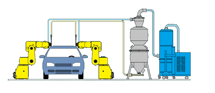- Unterbrechungsfreies Arbeiten und geringe Betriebskosten durch geschlossenen Strahlmittelkreislauf mit integrierter Aufbereitung.